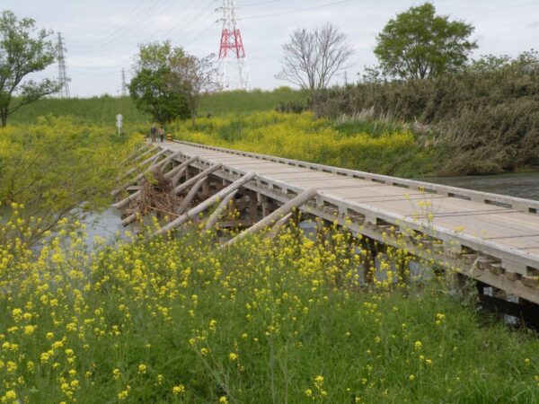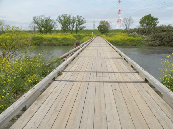 越辺川に架かる島田橋は、木造の素朴な姿が魅力の“映える橋”。ドラマやCMのロケ地としても知られ、自然と調和した景観が訪れる人を癒します。